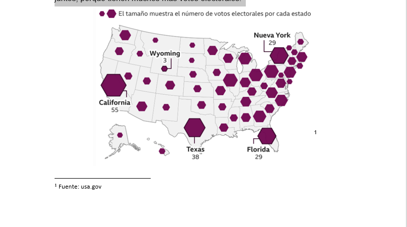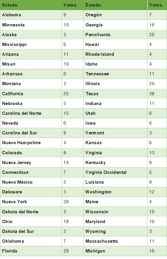 Aquí la lista de los votos electorales que tiene cada Estado: