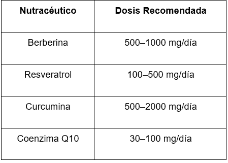 A continuación, se presentan algunos nutracéuticos que pueden promover la mitohormesis, junto con sus dosis recomendadas: