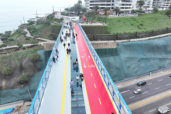 Único en su tipo en Sudamérica, une los malecones De la Reserva (Miraflores) y Paul Harris (Barranco). Tiene 112 metros de largo y 8 metros de ancho, y en los laterales cuenta con cuatro capas de vidrio transparente que permitirá a los amantes de los selfies captar las más impresionantes imágenes, teniendo como referencia el océano Pacífico.