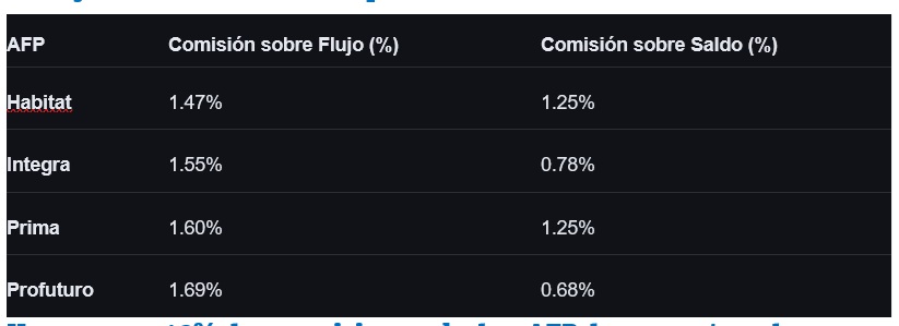 Hoy a ese 10% las comisiones d elas AFP las muestra el cuadro y a eso hay que sumarle la comisión del seguro de 1.37% que es en realidad 13.70% del 10 del aporte.