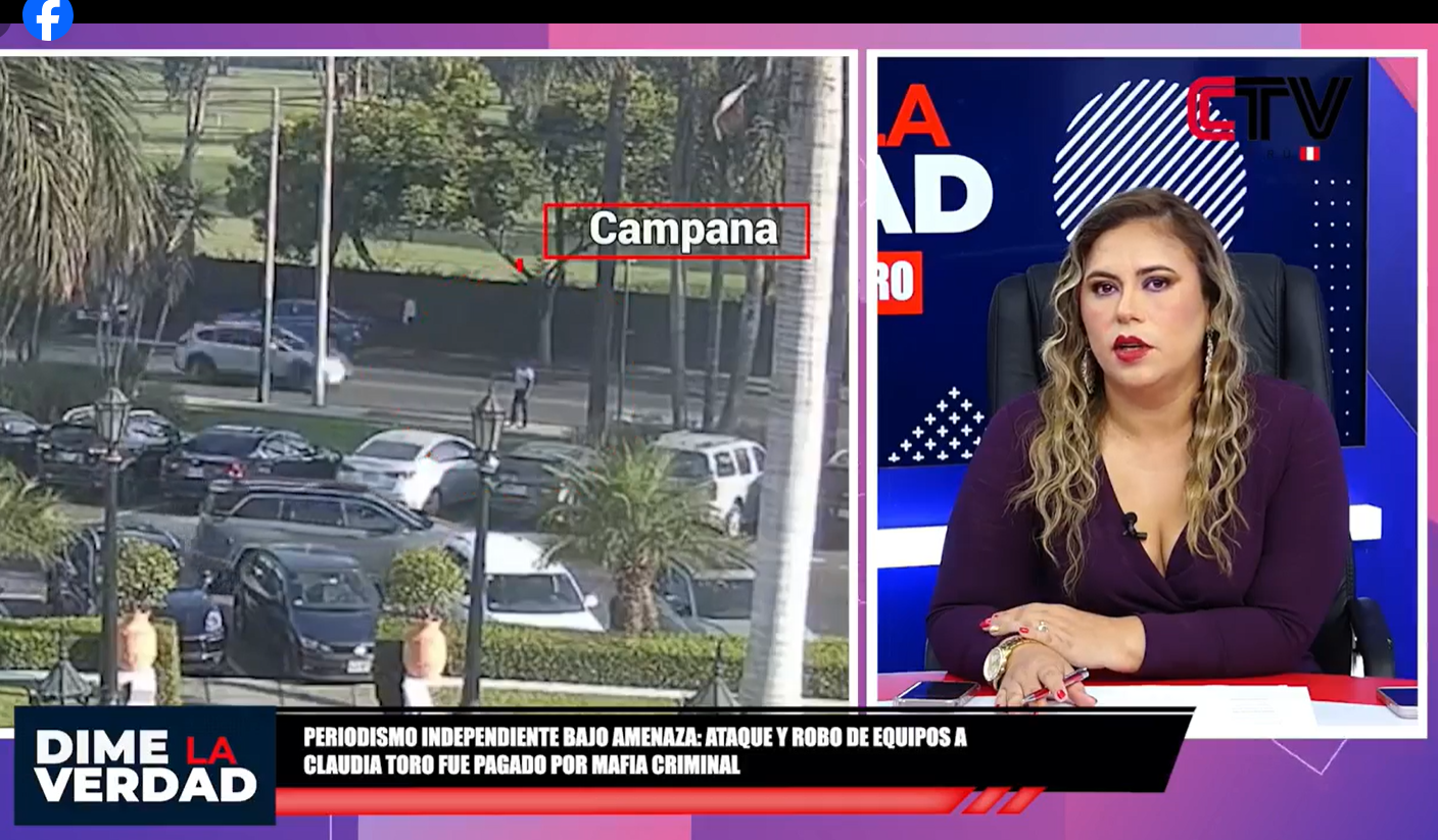La periodista Claudia Toro, directora de CTV Perú denunció a través de su programa “Dime La Verdad” que el robo del cual fue víctima tuvo una intencionalidad de amedrentarla por las investigaciones al coronel de la Policía Nacional, en condición de retiro Harvey Colchado, y la línea del canal que es crítica del sistema de justicia que desnuda con evidencias el cuestionado Poder Corrupto Caviar: Villaran, Barreto, Heredia, Humala, Toledo, y Odebrecht.