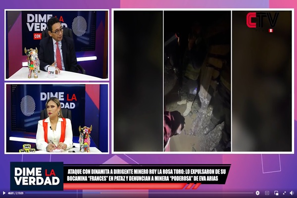 El abogado Humberto Abanto, fue claro en el programa “Dime La Verdad” que dirige la periodista Claudia Toro, al señalar que el Congreso debe hacer una comision que investigue los hechos de violencia en la localidad minera de Pataz, donde bandas criminales no dejan que la minería artesanal se desarrolle. Exigió además que las medianas mineras no bloqueen las acciones de formalización integral de la pequeña minería desde el gobierno. “El REINFO es una pésima ley mal planteada, y solo favorece y amarra a la voluntad de las mineras con concesiones”, advirtió.