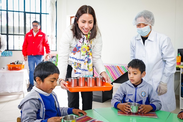 • La ministra Lesly Shica inició sus actividades visitando la I. E. N° 326 Virgen de Lourdes de Jauja, para supervisar la preparación y servido de alimentos para asegurar un aporte nutricional de alta calidad a los 79 estudiantes que reciben el servicio de alimentación escolar.